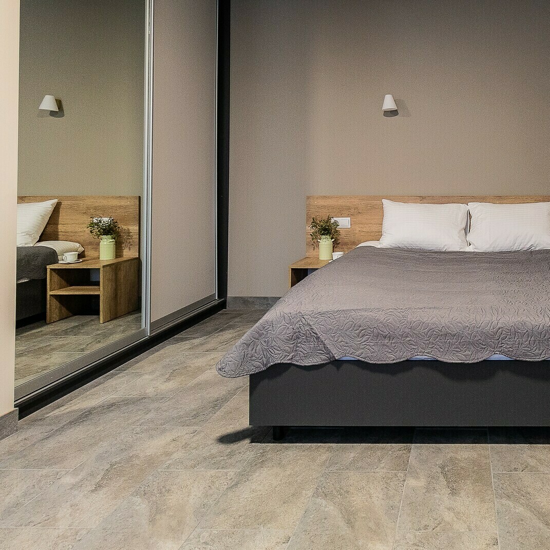 Апартаменты с двухспальной кроватью, гостиной и дополнительным местом, оборудованные всем необходимым для долгосрочного, бюджетного проживания